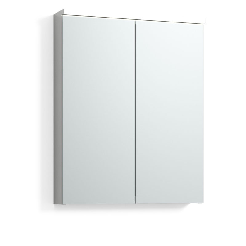 Superförmånligt vit 60cm bred spegelskåp med st LED -belysning, tryckknapp och vägguttag och dubbel spegeldörrar. I skåpet finns st flyttbar hyllor. Soft close -funktionen på spegeldörrarna. Ett perfekt spegelskåp för små och medelstora badrums.