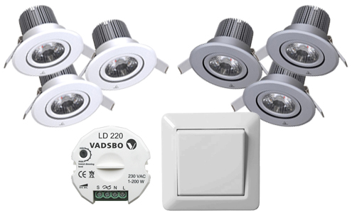 I varje spotpaket ingår st downlights, st LED lampor, st transformator (till de lampor som kräver det) och en dimmer eller strömbrytare. Här hittar du LED downlights för både utanpåliggande och infällning från kända varumärken som Markslöjd och Malmbergs. Lamporna levereras med en dimbar leddriver för anslutningsspänning 230VAC och de dimmas med en återfjädrande väggströmbrytare som också ingår i paketen.
