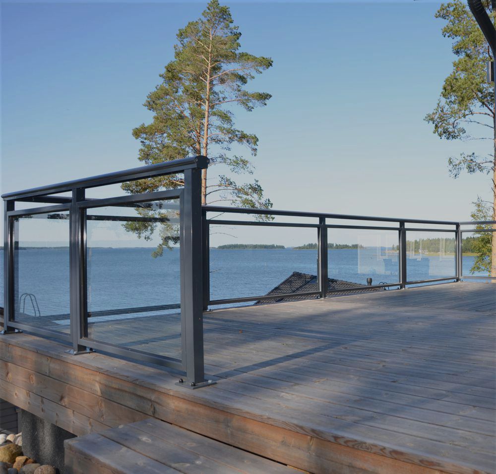 Altanräcke i glas med stolpar i rostfritt, aluminium, eller helglas. Priset ser du direkt i beställningsverktyget.