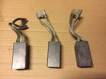 En så enkel och billig detalj som ett par kol till en elmotor gick inte att uppbringa. På lågprisvaruhuset, där jag en gång köpt kapen, såg. Gnistbildning mellan kol och kollektor kan allvarligt skada kollektorn. Nja kolen är inte helt slut, utan de är ca 10-8mm kvar.