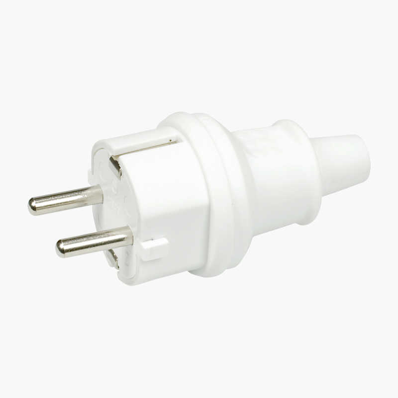 De tydliga plintmärkningarna gör installationen enkel. Kontaktdelar i mässing ger tillförlitlig anslutning. Godkänd för utomhusbruk. Jordad stickpropp för sladdmontage med greppring.