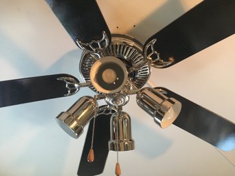 Då är takfläkten som effektivast och kan vispa runt all luft i rummet. Takfläkt med belysning.